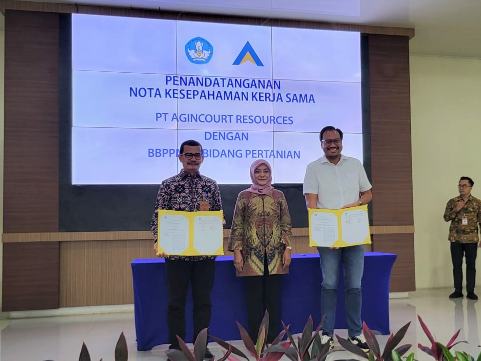 PT Agincourt Resources (PTAR) –pengelola Tambang Emas Martabe–, menandatangani perjanjian kerja sama Program Pengembangan Sekolah Menengah Kejuruan (SMK) Pertanian Terpadu dengan Balai Besar Pengembangan Penjaminan Mutu Pendidikan Vokasi (BBPPMPV) Pertanian, pada Kamis (15/6/2022) di Gedung Dewi Sartika, BBPPMPV Pertanian Cianjur, Jawa Barat.