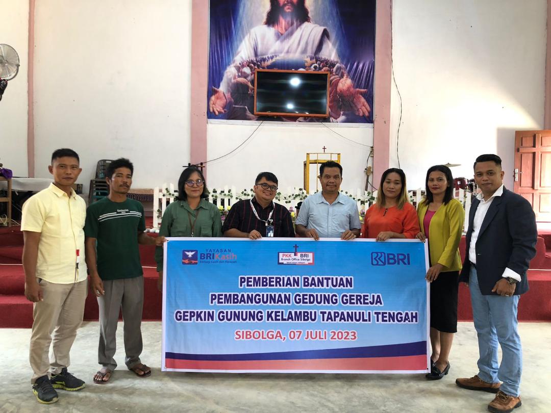 Bank Rakyat Indonesia (BRI) Kantor Cabang (Kanca) Sibolga serahkan dana bantuan pembangunan gedung Gereja Pantekosta Kudus Indonesia (GEPKIN) Gunung Kelambu, Badiri, Tapanuli Tengah, Jumat (7/7) siang.