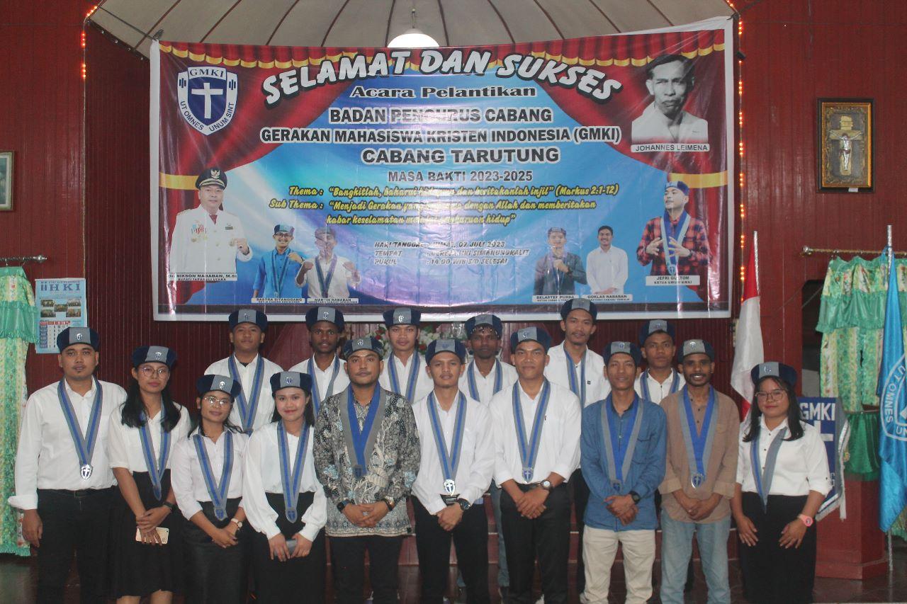 Ketua Umum Pengurus Pusat Gerakan Mahasiswa Kristen Indonesia (PP GMKI) Jefri Edi Irawan Gultom melantik BPC GMKI Cabang Tarutung masa bakti 2023-2025 di HKI Hutaraja Simanungkalit, Sipoholon, Jumat (7/7) sore.