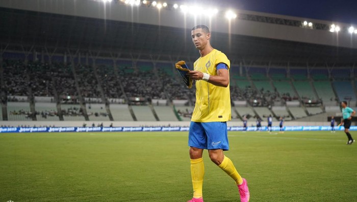 Cristiano Ronaldo mencetak gol untuk Al Nassr dalam pertandingan Arab Club Champions Cup 2023 atau Liga Champions Arab. Al Nassr menang besar 4-1 atas Monastir.